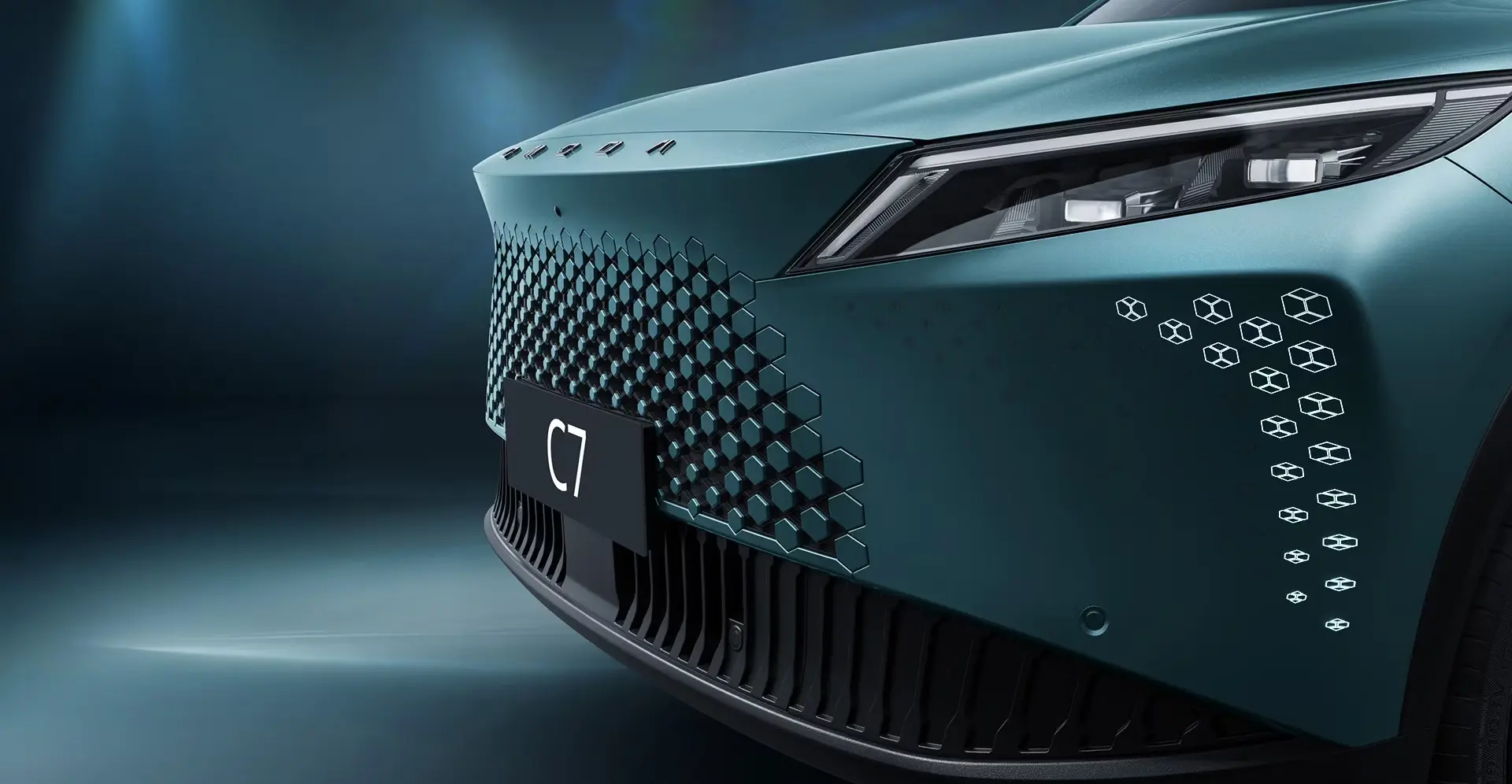 OMODA C7 - это элегантность в движении. Бегущие поворотники, L-образные дневные ходовые огни и стильные «молнии» задних фонарей создают уникальный световой рисунок. Приветственный паттерн Design ID и современная светодиодная оптика подчеркивают инновации в каждой детали!